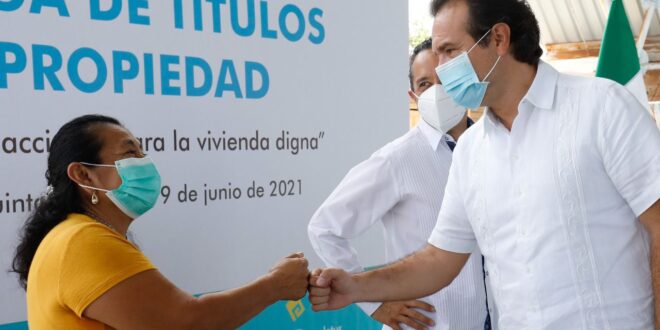 COZUMEL, QRoo, 19 de junio de 2021.- Autoridades estatales y el Presidente Municipal, Pedro Joaquín, entregaron 203 títulos de propiedad a igual número de ciudadanos cozumeleños, a través del Programa de Acciones para la Vivienda Digna.