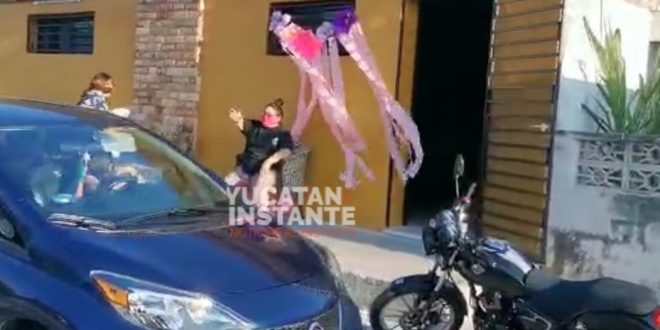 MÉRIDA, Yuc., 13 de Mayo 2020. La contingencia provocada por el coronavirus Covid-19, no fue impedimento para que un familia del sur de Mérida organizara un baby shower sobre ruedas.