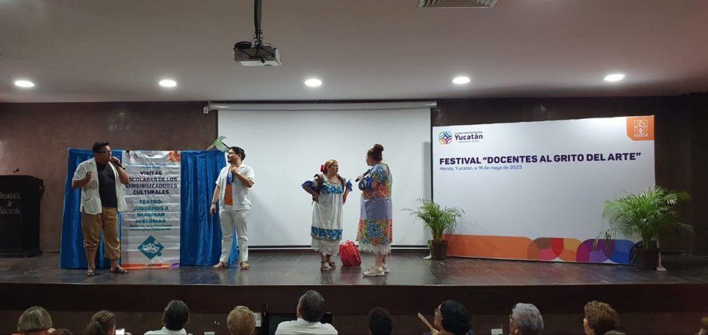 Mérida, Yucatán, a 18 de mayo del 2023.- Con el fin de promover la importancia de integrar recursos como la música, el teatro y la literatura a las estrategias de aprendizaje, los sensibilizadores culturales de la Coordinación de Educación Artística de Primaria, organizaron el festival “Docentes al grito del arte”.