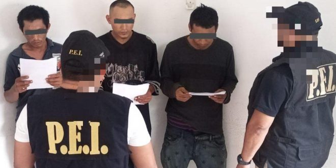 MÉRIDA, Yuc., 08 de julio 2022.- Por el homicidio de un hombre, cometido el pasado lunes en Ticul, hoy fueron capturados tres sujetos: Juan Diego C. P., Rodolfo Emanuel R. F. y Oscar Ismael U. K.