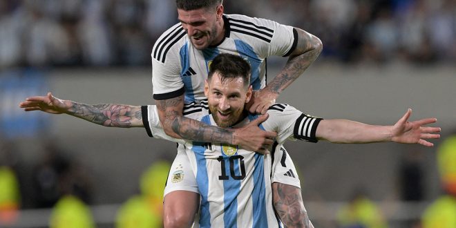 La selección de Argentina ganó por 2-0 (parcial 0-0) a su similar de Panamá, en un partido amistoso como parte de los festejos por la Copa del Mundo que ganó la Albiceleste en Qatar 2022, jugado este jueves en el estadio Monumental en Buenos Aires.