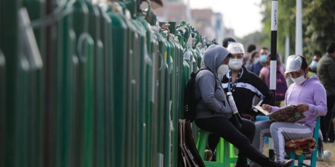 Cientos de peruanos hacen cada día filas de hasta 72 horas y duermen en la calle para conseguir un cilindro de oxígeno medicinal, un bien indispensable para la atención sanitaria de familiares y allegados enfermos de COVID-19.