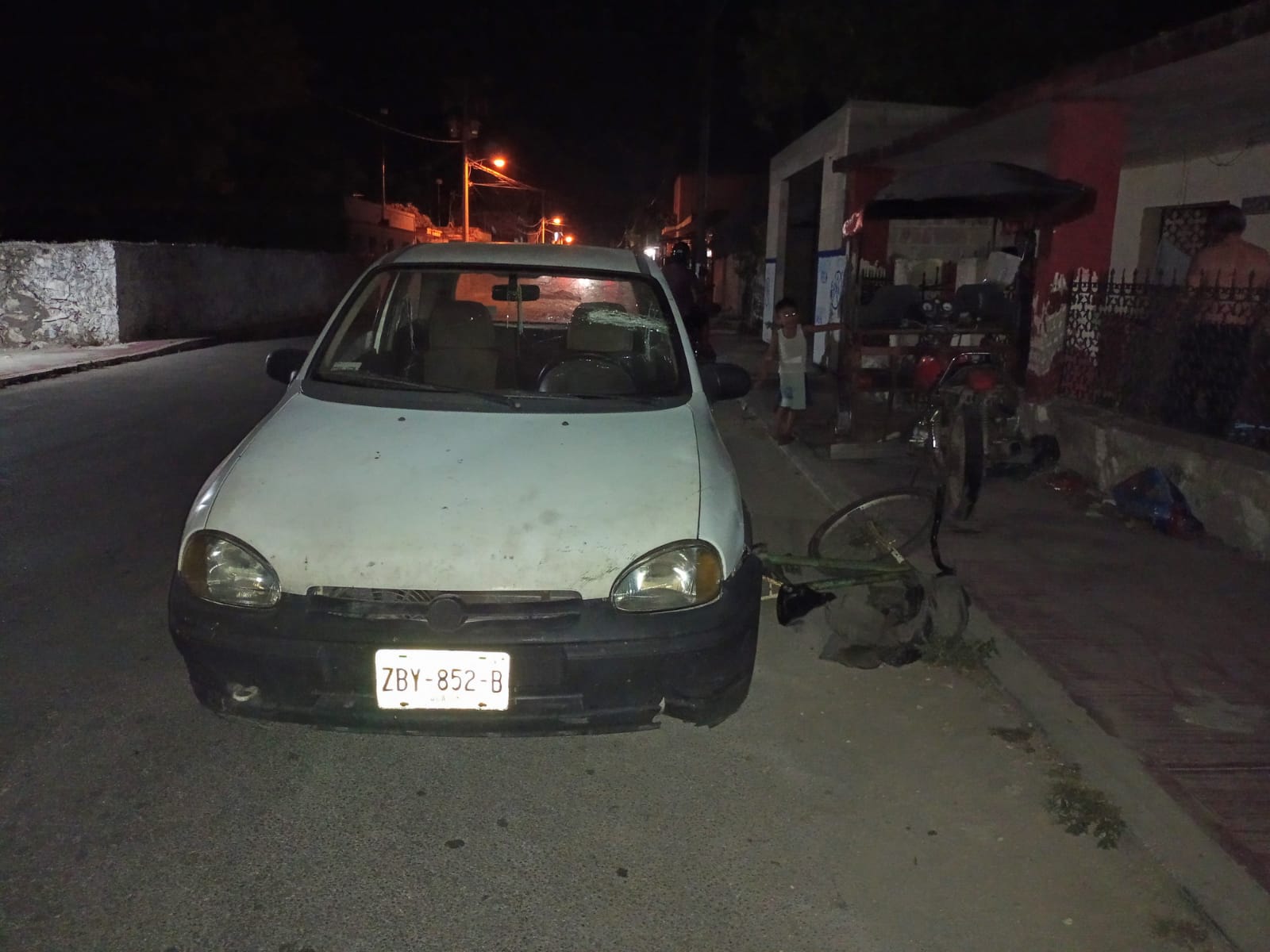 Esa misma jornada, pero a las 10 de la mañana el mototaxista “Chayanne” fue chocado por el conductor de un Tsuru verde que voló la señal roja de la calle 20 por 27. El taxista llevaba a una señora de Tamchén, quien apenas tuvo algunos golpes, mientras el guiador del Nissan que se desempeña como voceador aceptó su culpa y acompaño a la Policía Municipal para llegar a un arreglo con los afectados.