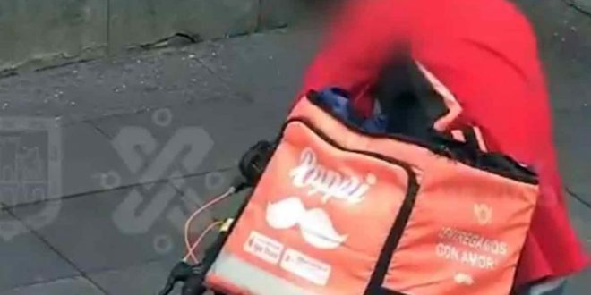 Las imágenes muestran al sujeto caminando con una mochila color naranja con el logo de la empresa Rappi.