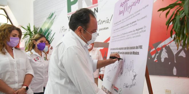 Tras participar en línea en el evento nacional para la firma de la agenda por las mujeres, la dirigencia estatal priista también signó el acuerdo junto con sus aspirantes y precandidatos para establecer un compromiso firme con las mujeres yucatecas.