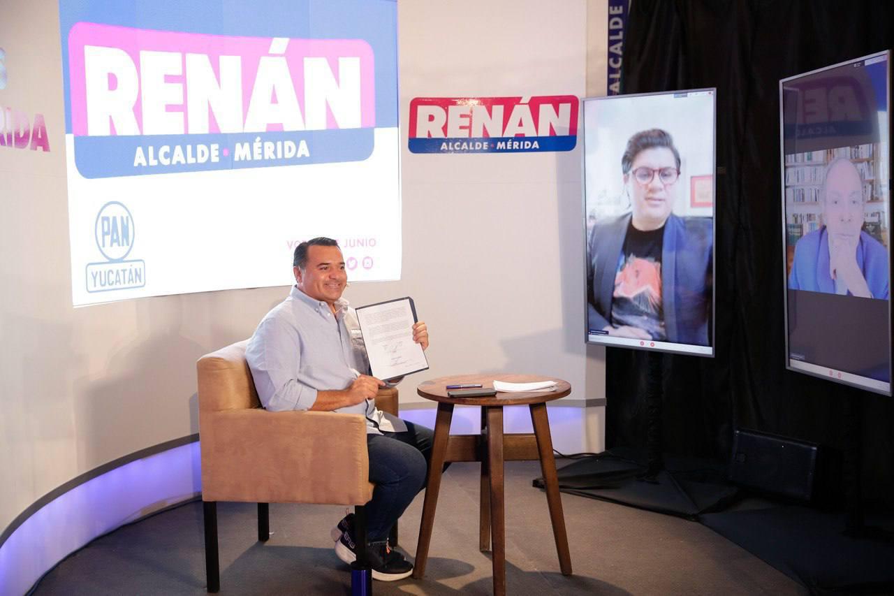 Mérida, 14 de abril de 2021. En aras de hacer a Mérida un referente nacional de lo que significa un municipio con las mejores prácticas en materia de transparencia, el candidato del PAN a la alcaldía, Renán Barrera Concha, participó esta mañana en un conversatorio anticorrupción y firmó, para hacerla pública, su declaración 3 de 3.