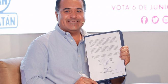 Mérida, 14 de abril de 2021. En aras de hacer a Mérida un referente nacional de lo que significa un municipio con las mejores prácticas en materia de transparencia, el candidato del PAN a la alcaldía, Renán Barrera Concha, participó esta mañana en un conversatorio anticorrupción y firmó, para hacerla pública, su declaración 3 de 3.
