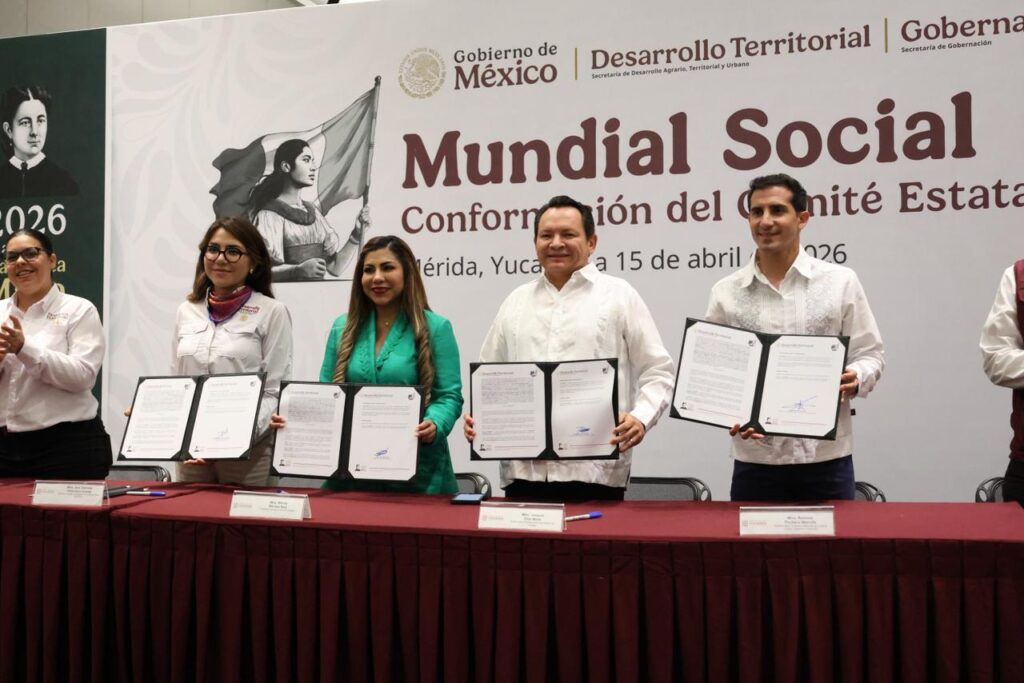 MÉRIDA, Yuc., 15 de abril 2026.- .- En el marco del Mundialito Social 2026, Rommel estuvo en Mérida para firmar, junto con el Gobernador Joaquín Díaz Mena, un acuerdo de colaboración para el cuidado y mantenimiento de las canchas que participan en esta iniciativa del Gobierno de México, encabezada por la Presidenta Claudia Sheinbaum Pardo.
