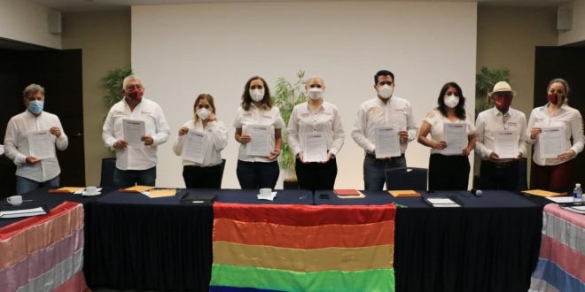 Mérida, Yucatán, 30 de abril de 2021.- La candidata a la alcaldía de Mérida, por el partido Movimiento Regeneración Nacional (Morena), Verónica Camino, firmó este día la agenda del colectivo LGBTTTIQ+ de Yucatán, presentada por 18 personas y asociaciones.
