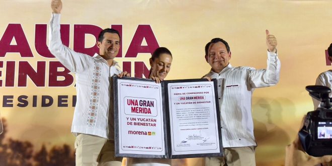 Agregó que Rommel tiene la misión de no subir el predial y proteger la economía cuando sea alcalde. “Vengo aquí a comprometerme y nosotros luchamos por la igualdad, somos humanistas porque le damos la mano al que se quedó atrás, por eso lo firmé, vamos a seguir apoyando a Mérida y Yucatán. El 2 de junio necesitamos votar 6 de 6 para que la transformación siga”, finalizó.