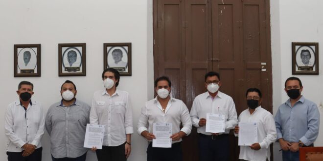 Para formalizar este acuerdo, las autoridades municipales de la Dirección de Catastro y ZOFEMAT y Desarrollo Urbano y Obra Pública, recibieron en Sala de Presidentes a Manuel Jesús León Irola, Presidente del Consejo Directivo del Colegio de Ingenieros Civiles de Progreso A. C. Y a Víctor Pastor Tec Tamay, Vice Presidente del Consejo Directivo de la institución.