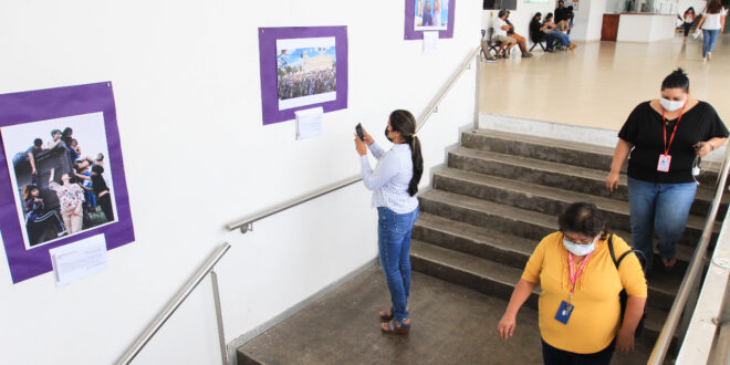 Mérida, Yucatán a 02 de marzo de 2022.- Un total de 16 fotografías para visibilizar y promover la sororidad integran la muestra instalada en los pasillos principales de la Fiscalía General del Estado (FGE), iniciada desde el pasado 24 de febrero y que permanecerá hasta el próximo 3 de marzo.