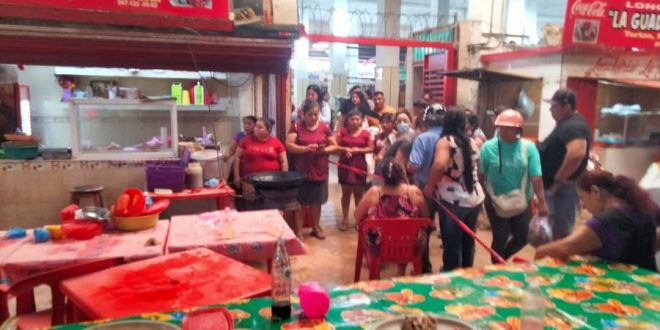 Ticul, Yuc., 14 octubre 2024- Al menos tres personas quedaron lesionadas luego de un flamazo al interior de un puesto de comida en el mercado municipal de Ticul, lo cual movilizó de inmediato a los cuerpos de emergencias.