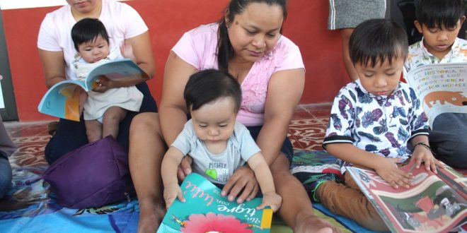 En esta feria titulada “Lecturando en comunidad”, se invitó a las familias a inculcar el disfrute por la lectura en las niñas y niños pequeños, comenzando con libros con ilustraciones y posteriormente con textos leídos y también, gozados por los cuidadores de los menores. Esta actividad se prevé realizar en 14 localidades que participan en el programa Educación Inicial No Escolarizado en el estado de Yucatán.