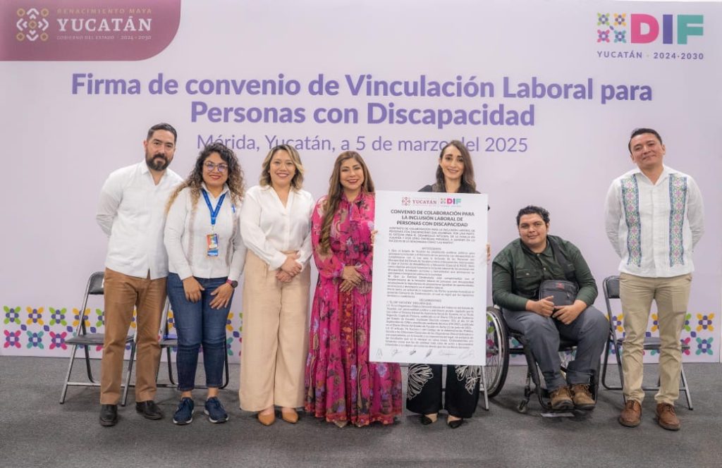Mérida, Yucatán, a 5 de marzo de 2025.- Con el objetivo de vincular a personas con algún tipo de discapacidad a la vida laboral, y procurar el desarrollo pleno de sus habilidades y aptitudes, en coordinación con el CREE (Centro de Rehabilitación y Educación Especial), el Gobierno del Estado a través del DIF Yucatán celebró la firma de un convenio de colaboración para la vinculación laboral de personas con discapacidad.