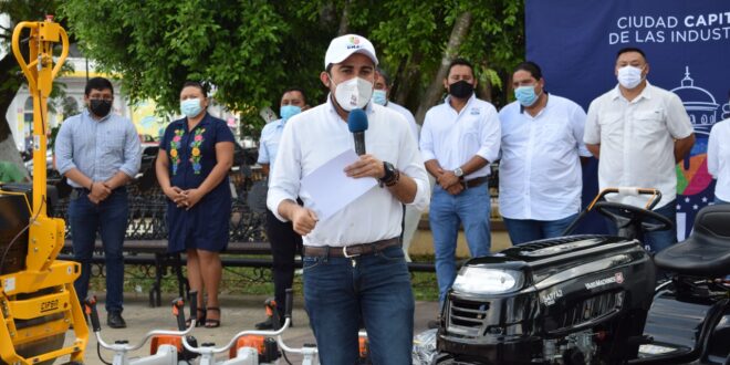 Con maquinaria, equipo de transporte y aparatos de limpieza para las Direcciones de Desarrollo Urbano y Obras Públicas, Servicios Públicos Municipales y Deportes y Cultura Física del Ayuntamiento con el objetivo de que puedan desarrollar sus labores de manera satisfactoria, el Presidente Municipal de Umán, Dr. Gaspar Ventura Cisneros Polanco fortalece los “brazos” del Ayuntamiento para mejorar los servicios de los ciudadanos.
