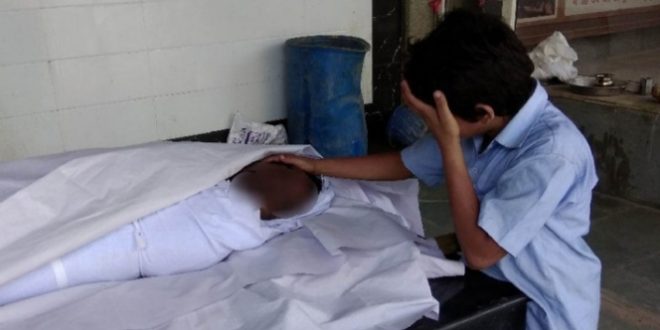 India. En redes sociales es viral la fotografía de un niño llorando junto al cuerpo sin vida de su padre pues no tiene dinero para realizar el funeral.