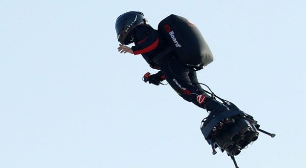 Su plataforma le permite volar de pie a una velocidad de hasta 190 kilómetros por hora con una autonomía de una decena de minutos.