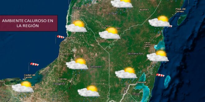 🌦️ Para Yucatán se espera cielo medio nublado con lluvias puntuales fuertes en el oriente y sur del estado, además de precipitaciones menores en el resto de la entidad. En la costa se prevén rachas de viento del norte-noreste de hasta 40 km/h.
