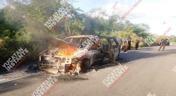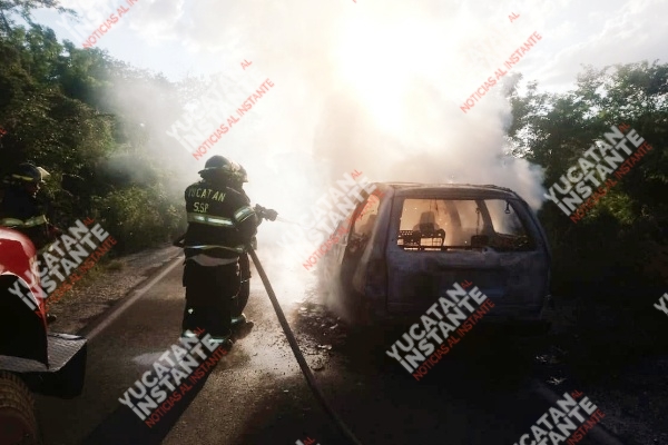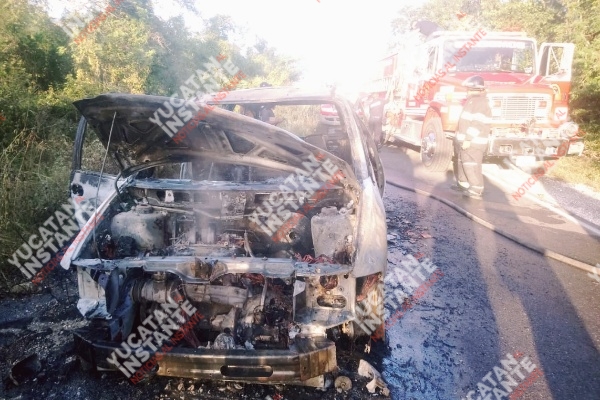 TECOH , Yuc., 28 de noviembre de 2019.- Un vehículo Caravan fue devorado completamente por el fuego cuando circulaba en la vía Tecoh – Tekit, a la altura de la entrada de Xkanchakán, comisaría de Tecoh, la tarde de ayer.