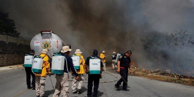 Los bomberos indicaron que desconocían el motivo del incendio, pero recalcaron que lo que más se quemaba era basura que los mismos vecinos arrojan al terreno de poco menos de dos hectáreas. Información Diario de Yucatán