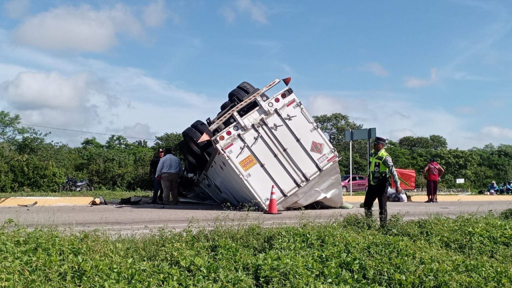 Home / Destacada policía / Fuerte accidente se registra en la Mérida-Campeche, entre un tráiler y dos automóviles; hay 8 lesionados