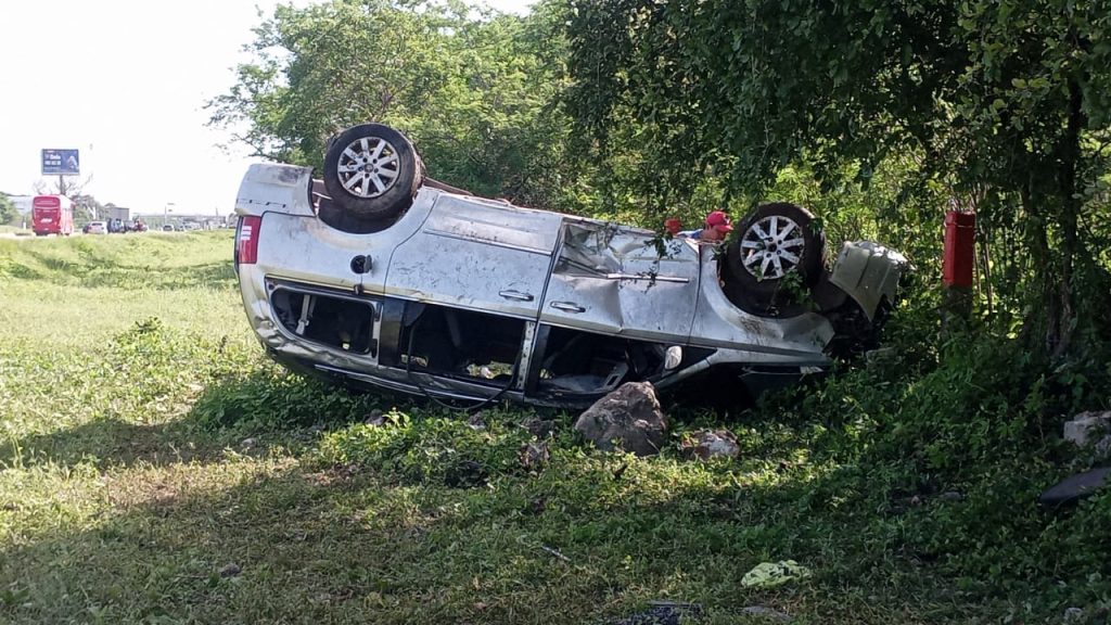 Umán, Yuc. a 10 de septiembre 2024.- Un tremendo accidente se suscitó esta mañana a la altura del kilómetro 154 de la carretera federal Mérida-Campeche, exactamente a unos metros antes de llegar al retén de la SSP.