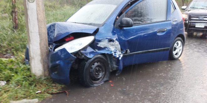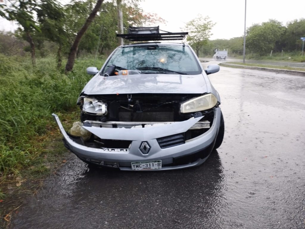 De acuerdo a datos recabados, el conductor del vehículo gris, quiso retornar tras salir de la calle 24 para tomar dicha avenida. Esto ocasionó que este último roce con la parte de la facia del i10, perdiera el control la mujer de su unidad hasta estrellarse de lleno con un pilote de concreto de la CFE.