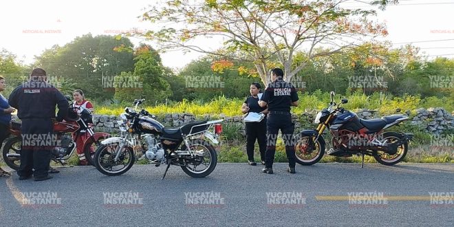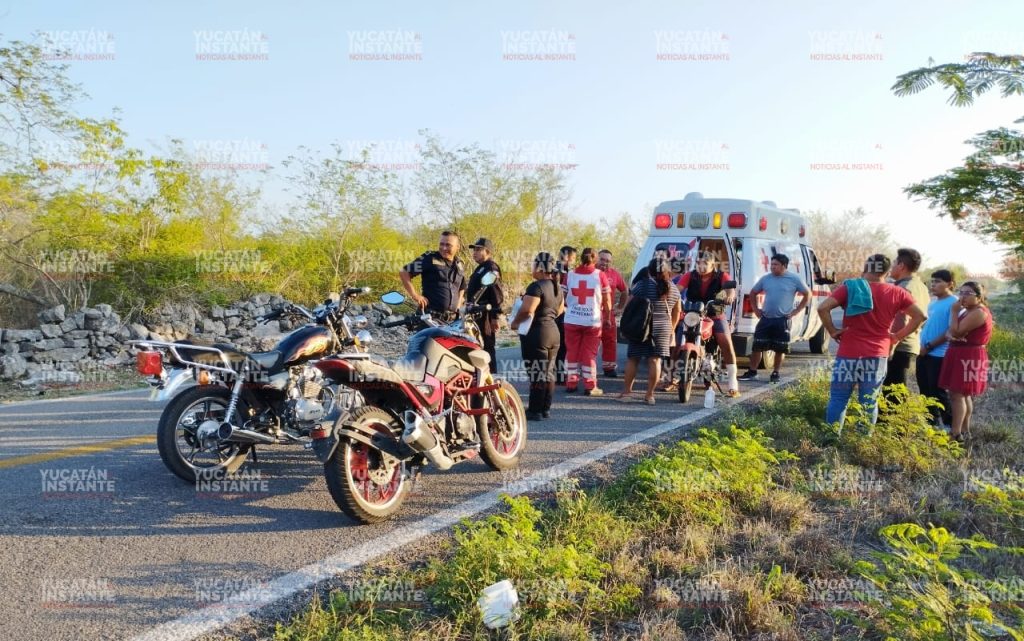Tetiz, Yuc., 03 de julio 2023.- Un par de motociclistas heridos arrojó un seco “rozón” entre ellos, en la carretera que une este municipio con Tetiz, ayer domingo.