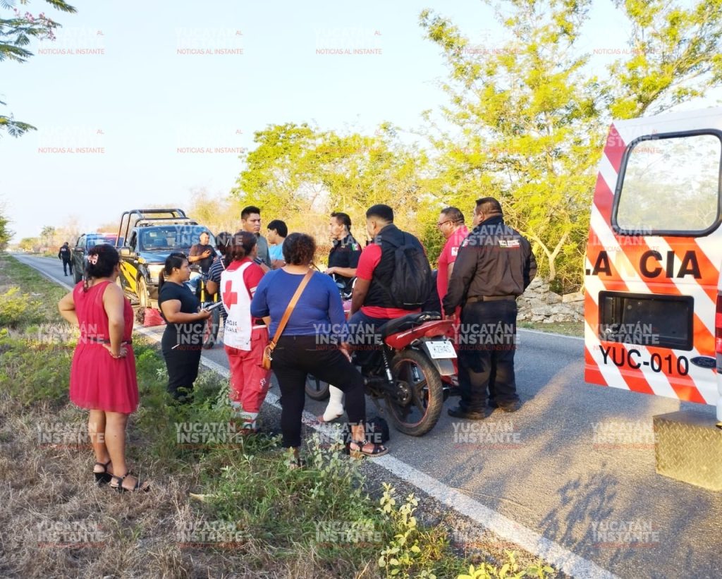 La maniobra le costó al joven teticeño que se embarre su pie izquierdo con el ‘tumbaburros’ del caballo de acero de Freddy; cuyo percance se dio a unos metros del entronque Kinchil-Tetiz.