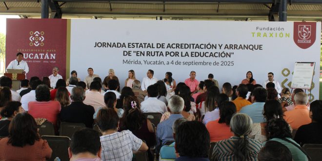 Mérida, Yucatán, 5 de septiembre de 2025.- Fundación Traxión inició en Mérida la Ruta 20 de su programa En Ruta por la Educación, iniciativa que busca reducir el rezago educativo en comunidades de todo el país mediante aulas móviles equipadas con tecnología y conectividad.
