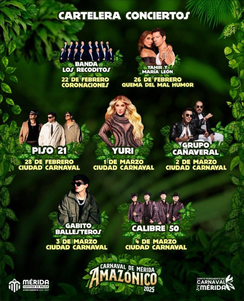 Home / Destacada Local / Gabito Ballesteros, Yuri y Calibre 50 entre la cartelera del Carnaval de Mérida 2025