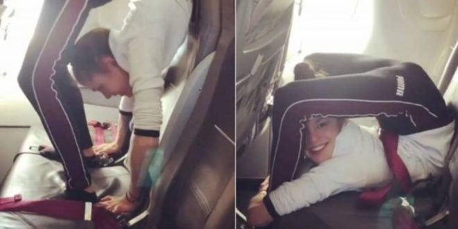 Una gimnasta de nombre Stefanie Millinger está causando furor en las redes sociales por un video donde dobla su cuerpo dentro de un pequeño espacio de un asiento de avión.