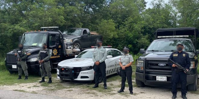 Al sito también arribaron elementos de la Guardia Nacional y en coordinación con las autoridades estatales se aseguró el vehículo y su cargamento.