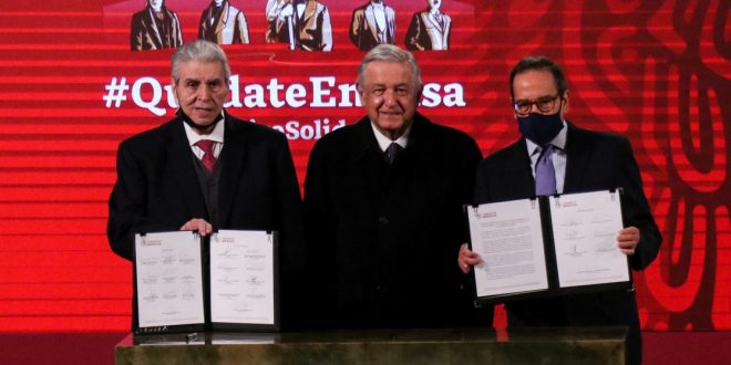 “Muchas gracias por esta visita y por participar en este acto de conciliación en busca de un acuerdo sobre dos temas interrelacionados muy importantes lo que tiene que ver con la subcontratación y lo que tiene que ver con el reparto de utilidades, no se puede imponer nada”, comentó el mandatario mexicano.
