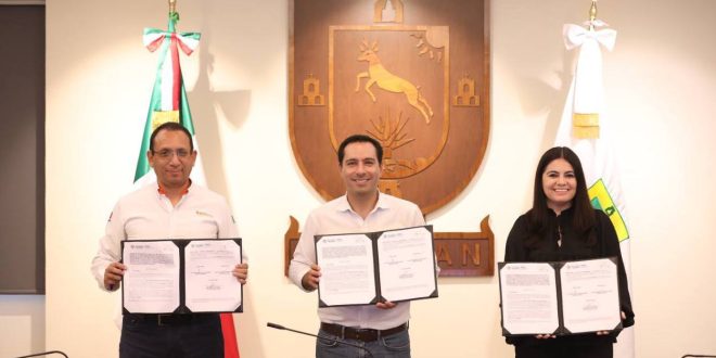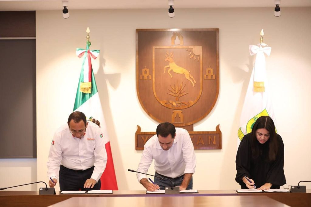 El Gobernador atestiguó la firma del acuerdo entre la directora del Instituto para la Inclusión de las Personas con Discapacidad del Estado (Iipedey), María Teresa Vázquez Baqueiro, y el gerente de la Unidad de Negocio Península de dicha compañía, Hugo Edmundo Monterrey Arriola, el cual permitirá la contratación de dicho número de yucatecos, este año, en un entorno que favorezca su autonomía.
