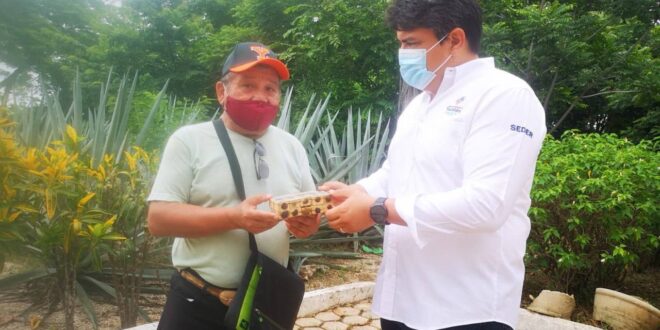 Por instrucción del Gobernador Vila Dosal, el funcionario estatal encabezó la distribución de 210 paquetes de insectos a 12 mujeres y hombres de los municipios de Halachó, Kinchil, Cuzamá, Maxcanú y Chicxulub Pueblo.