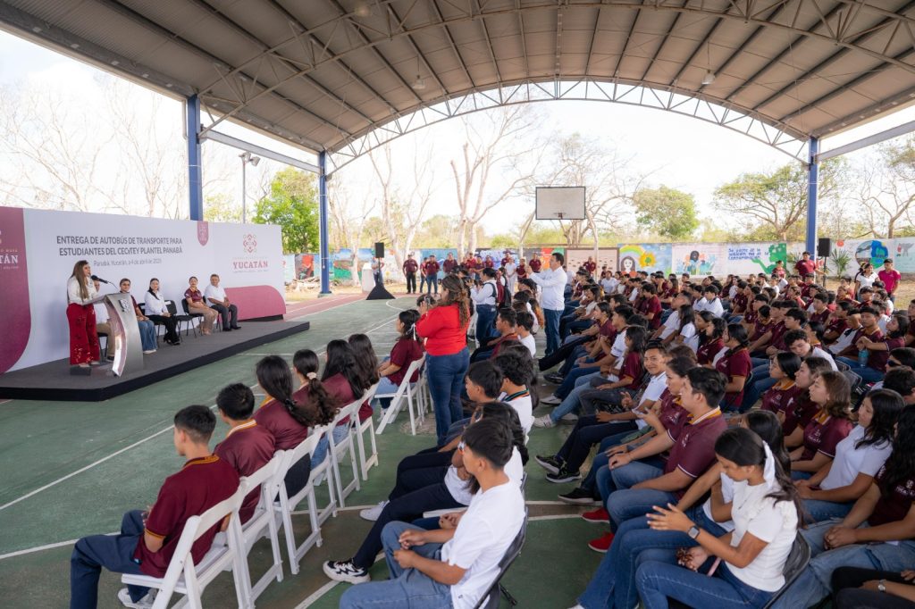 Gracias a las gestiones del Gobierno del Renacimiento Maya, el Plantel CECyTEY Panabá se convertirá en un “Plantel Azteca” y, además, es el primero en recibir un autobús escolar en más de 30 años de historia del subsistema, beneficiando directamente a 65 estudiantes de San Felipe y Río Lagartos.