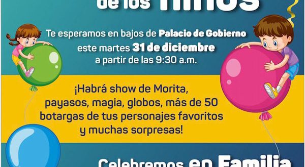 La cita es este martes 31 de diciembre a partir de las 9:30 de la mañana en los bajos del Palacio de Gobierno, espacio pensado para que en el último día del año los yucatecos se reúnan a convivir y gozar de un festival lleno de divertidos espectáculos para que los niños disfruten en compañía de sus papás y mamás.