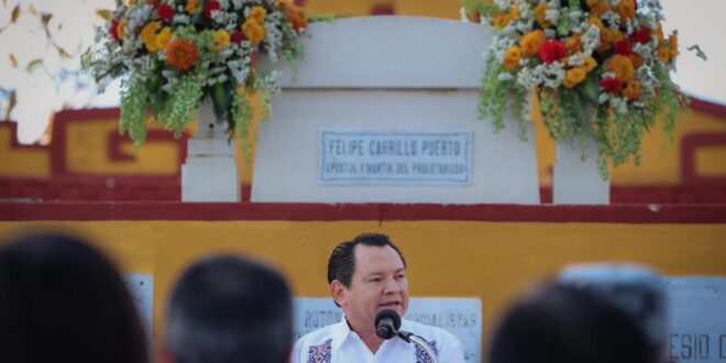 “Hoy rendimos homenaje a un hombre que entendió que el poder solo tiene sentido cuando se pone al servicio de los más pobres, de los olvidados, de los pueblos mayas que durante décadas fueron excluidos de las decisiones y del desarrollo. Carrillo Puerto defendió la tierra, la educación, la dignidad del trabajo, los derechos de las mujeres y el derecho del pueblo a vivir sin miedo ni sometimiento”, afirmó.
