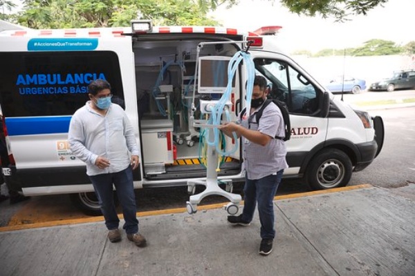 Por indicaciones del Gobernador Mauricio Vila Dosal, el titular de la Secretaría de Salud de Yucatán (SSY) Mauricio Sauri Vivas, entregó al director de la UMAE del IMSS, Roberto Abraham Betancourt Ortíz, 20 ventiladores, 20 monitores de signos vitales 1 videolaringoscopio, 1 camilla cubierta para transferencias hospitalarias, 1 cámara media de transporte con filtro HEPA para personas con sobrepeso para, de esta forma, reforzar el equipamiento de esta unidad hospitalaria que atiende a pacientes con este virus.