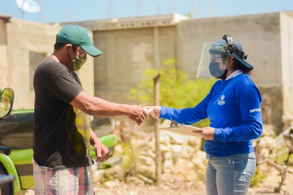 Las brigadas que se encargan de hacer la entrega casa por casa de estos apoyos económicos lo hacen siguiendo los protocolos sanitarios sugeridos, como utilizar el cubrebocas, guantes y guardando la sana distancia con los beneficiarios para así garantizar que la entrega del recurso se haga de forma sana y segura.