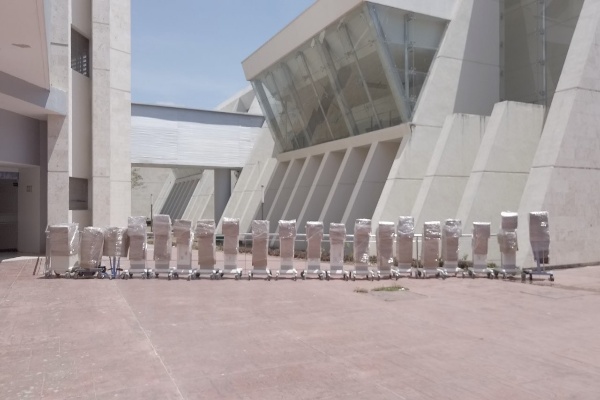 Mérida, Yucatán, 19 de abril de 2020.- Las 110 unidades de asistencia respiratoria, mejor conocidos como ventiladores, que el Gobierno del Estado adquirió de manera anticipada ante la escasez mundial de estos equipos por la pandemia del Coronavirus comenzaron a distribuirse en los hospitales públicos estatales, como parte del proceso de reconversión hospitalaria que dispuso el Gobernador Mauricio Vila Dosal.