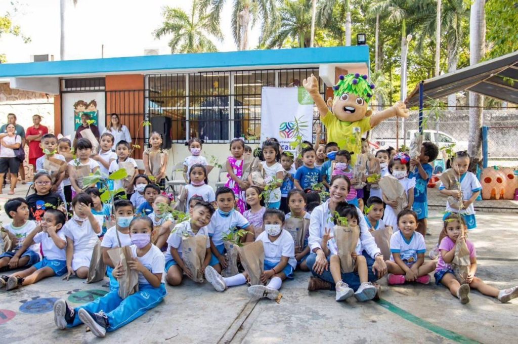 Mérida, Yucatán, 8 de julio de 2023.- A través de la estrategia “Un niño, un árbol”, el Gobierno del Estado ha distribuido 75,211 plantas nativas, que equivalen a sembrar 225.86 hectáreas, en escuelas de nivel básico de municipios del centro y oriente de la entidad, con lo que suman más 800 mil árboles plantados mediante el programa Arborizando Yucatán y se supera la meta de 600 mil establecida al principio de la administración del Gobernador Mauricio Vila Dosal.