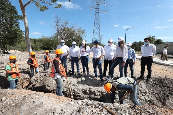 Junto con el acalde de Mérida, Renán Barrera Concha, Vila Dosal acudió a esta obra, ubicada al norte de esta capital, en la que se invierten 177 millones de pesos para recuperar e intervenir 49 hectáreas de desarrollo, con 5 kilómetros de corredor urbano, en beneficio de más de 165,000 habitantes y que hasta el momento ha permitido crear más de 1,200 fuentes de trabajo, entre directas e indirectas.