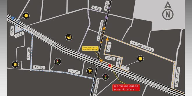 Quienes transitan por los carriles centrales del periférico, de oriente a poniente, deben considerar que la salida del distribuidor vial de City Center permanece cerrada. En este caso, se recomienda mantenerse a la derecha, tomar la lateral e incorporarse a la nueva avenida para conectar con calle 25 hacia la avenida 24.