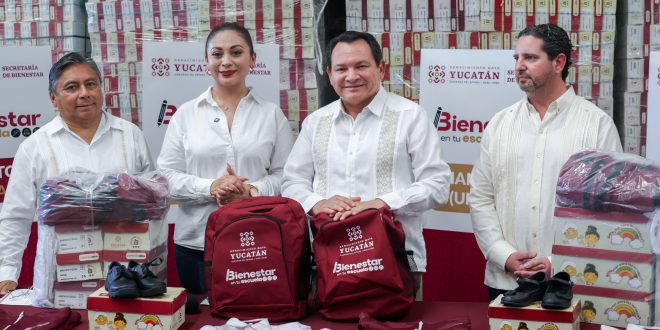 Durante el evento, la secretaria de Bienestar, Fátima Perera Salazar, mostró al Gobernador y demás autoridades el contenido de los paquetes escolares, los cuales serán distribuidos en los próximos días a través de 14 rutas en el interior del estado y cinco en Mérida.