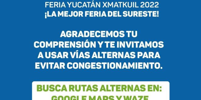El evento dará inicio a las 9:30 horas, por lo que el operativo comenzará en el Circuito Colonias, frente al estadio Kukulcán-Álamo, en sentido poniente, hasta entroncar con la 42 sur; posteriormente, la caravana girará a la izquierda, se enfilará hacia la hacienda Tahdzibichén y, finalmente, hasta el recinto ferial. Ello interferirá con el tránsito por cerca de dos horas, no obstante, las unidades del transporte público que cubren las diversas rutas por esas zonas tomarán vías alternas para continuar prestando el servicio.