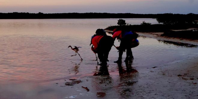 En coordinación con la Conanp, se realizaron jornadas de anillamiento en Ría Lagartos y Ría Celestún, acción que permitirá reforzar el monitoreo y la protección de esta especie emblemática