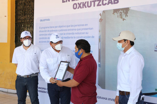 Para el caso de Oxkutzcab, con una inversión cercana a los 3.5 millones de pesos, se entregaron 43 certificados de acciones de vivienda, que se suman a las más de 21 mil acciones que han desarrollado en Yucatán, a fin de reducir las carencias relacionadas en este rubro para las personas en situación de pobreza mediante la construcción de acciones que incluyen cuartos dormitorios, sanitario y cocinas ecológicas, así como pisos firmes.